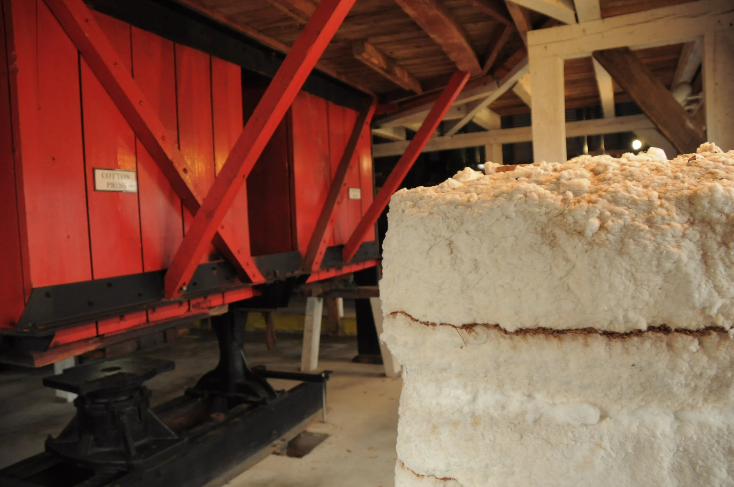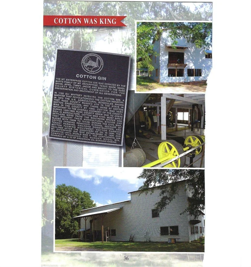 The cotton gin building and equipment once sat along Highway 259 and Highway 84 in Mount Enterprise. It was moved and reconstructed on the grounds of the museum.